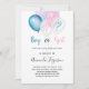 Für ein Geschlecht zeigen Babydusche. Ein schick weißer Hintergrund. Glitzer und Blau, rosa und weiße Ballons. Personalisieren und fügen Sie den Namen der Mutter zu sein und Party-Details. Der Name und der Text: Junge oder Mädchen werden mit einem handgeschriebenen Stift geschrieben