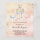 Für ein Geschlecht zeigen Babydusche. Ein rustikaler, goldfarbener und rot-rosa Hintergrund. Ein Teddybär mit weißen, blauen und rosa Ballons und goldenem Glitzer Staub. Personalisieren und fügen Sie den Namen der Mutter zu sein und Party-Details. Der Name und der Text: Junge? Mädchen? werden mit handgeschriebenem Stilskript geschrieben