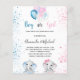 Bitte beachten Sie, dass diese Einladung auf Flyer Papier und sehr dünn ist. Umschläge sind nicht enthalten. Für dickere Einladungen (gleiche Gestaltung) besuchen Sie bitte unseren Shop. Für ein Geschlecht offenbaren Party, Babydusche. Ein schick weißer Hintergrund. Glitzer und Blau, rosa und weiße Ballons und Staub aus Glitzer. Ein Babyelefant und ein gabeliger Elefant. Personalisieren und fügen Sie den Namen der Mutter zu sein und Party-Details. Der Name und der Text: Junge oder Mädchen werden mit einem handgeschriebenen Stift geschrieben