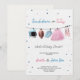 Vorderseite einer Geschlecht-Enthüllungs-Einladung mit einem Fußball, Tutu und Ballettschuhen an einer Wäscheleine. Text lautet "Touchdown oder Tutus?" in Pastellfarben.