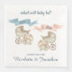 Diese individuellen Babygeschlechter zeigen, dass Party-Servietten ein altmodisches Aquarelldesign aufweisen. Auf beiden Seiten der Einladung wird ein Bild einer Vintagen Kutsche gedruckt. Vor der Kutsche sitzt ein gefüllter Babyhase. Auf der links Seite befindet sich ein blaues Band mit dem Titel "BOY", auf der rechten Seite ein rosa Band, auf dem der Titel "Girl" gedruckt ist.