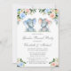 Moderne Elegant Watercolor Blau Weiße Blüte und Rosa Weiße Blütenjunge Elefanten Geschlecht Reveal Couple Duwer Party Einladung. Freuen Sie sich auf hübsche Aquarellblau-Rose, rosa Rosen, weiße Blume und botanische Vegetation. Silver Text. Blauer Elefant und rosa Elefant mit Bögen.