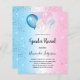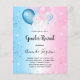 Für ein Geschlecht zeigen Sie Babydusche, Ein blaues und rosa Farbverlauf Hintergrund. Glitzer und Blau, rosa und weiße Ballons. Personalisieren und fügen Sie den Namen der Mutter zu sein und Party-Details. Der Name und der Text: Gender Reveal werden mit einem handgeschriebenen Stift geschrieben