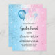Für ein Geschlecht zeigen Sie Babydusche, Ein blaues und rosa Farbverlauf Hintergrund. Glitzer und Blau, rosa und weiße Ballons. Personalisieren und fügen Sie den Namen der Eltern und Party Details. Der Name und der Text: Gender Reveal werden mit einem handgeschriebenen Stift geschrieben