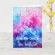 Niedliches Geschlecht enthüllt Karte für Familie und Freunde. Was wird das sein? Ein Junge oder ein Mädchen? Rosa oder blauer Rauch an der Vorderseite. Im Inneren ist es ein Junge und blaue Fußspuren.