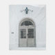 GESCHLOSSENE GARTENHOLZTÜR UNTER DER SCHWARZEN LIC FLEECEDECKE