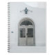 GESCHLOSSENE GARTENHOLZTÜR UNTER DER SCHWARZEN LIC NOTIZBLOCK