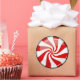 Eine glänzende, runde Leckerei mit Pfefferminzbonbons im klassischen Rot-Weiß-Stil, ideal für Weihnachten!