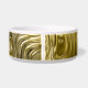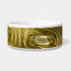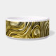 Eine Schüssel mit coolem "flüssigem Metall-Look", abstraktes Design und wirbelnde, blubende Formen in Gelbgoldtönen. Kann als Hintergrund für Ihren eigenen Text, Bilder und Ideen verwendet werden. Bitte beachten Sie, dass es sich um ein gedrucktes digitales Kunstbild handelt, das nicht glänzt oder echtes Metall enthält.