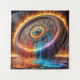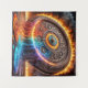 Eine gewaltige, aufwändig detaillierte Kreisuhr schmilzt unter intensiven Flammen, ihre Hände und Zahlen verflüssigen sich in pulsierende Ströme von geschmolzenem Krummeln, Neonviolett und leuchtendem Türkis. Die surrealen Flüsse mit geschmolzenen Farben bilden den Rahmen und ähneln flüssigen Edelsteinen in einer feuchten und schwelenden Landschaft. Die dunkle, stimmungsvolle Szene bringt eine intensive und surreale Drehung in das Zeitkonzept, perfekt für Liebhaber kühner, abstrakter Kunst mit einer feurigen Touch.