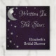 Geschrieben in den Sternen Brautparty. Silbermond und Sterne vor dunkler Mitternacht lila Hintergrund