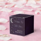 Geschrieben in den Sternen Brautparty. Silbermond und Sterne vor dunkler Mitternacht lila Hintergrund