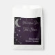 Geschrieben in den Sternen Brautparty. Silbermond und Sterne vor dunkler Mitternacht lila Hintergrund