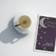 Geschrieben in den Sternen Brautparty. Silbermond und Sterne vor dunkler Mitternacht lila Hintergrund