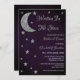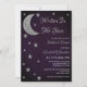 Geschrieben in den Sternen Brautparty. Silbermond und Sterne vor dunkler Mitternacht lila Hintergrund
