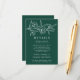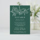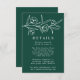 Elegante blumengeschmückte Hochzeitskarten mit weißgezeichneten Blume und Blätter in der Nähe der Oberseite des Designs mit einem waldgrünen Hintergrund. Persönlich gestalten Sie die botanischen Hochzeitskarten mit Ihren Hochzeitsdetails unten in klassischer weißer Schrift. Entworfen, um mit unserer Hochzeitskollektion Sketched Floral zu koordinieren.