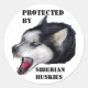 GESCHÜTZT VON SIBERISCHEN HUSKIEN RUNDER AUFKLEBER