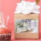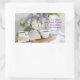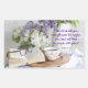 Eine Vase aus Lila, Gläsern, Buch und einer Tasse Tee, ein beruhigendes Bild mit Worten aus der Bibel: "Der Herr wird seinem Volk Kraft geben; der Herr wird sein Volk mit Frieden segnen."