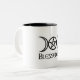 Die StandardTasse des Kaffees 11oz/des Tees mit dreifacher Göttin und gesegnet wird unten geschrieben. Äußerer Farbton der weißen Keramik mit schwarzem Innen- und schwarzem Schreiben.