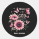 Gesegnet von Gott geliebt von Jesus rosa Sonnenblu Runder Aufkleber