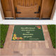 Türmatte mit Schrift: "Du wirst gesegnet sein, wenn du hereinkommst und gesegnet bist, wenn du rausgehst." von Deuteronomy 28:6 — Grüner Hintergrund mit gelben und roten Gerbera-Molkereien. Zitat und Verweis von Schriften können personalisiert sein, wenn man sie will, etwas Anderes zu sagen.