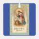 Auf der Vorderseite dieses Ornaments befindet sich ein schönes, Vintages Bild der gesegneten Mutter, die das Baby Jesus bedeckt. Mit der Nachricht "Ein Friedliches Glück Weihnachten". Die Rückseite des Ornaments zeigt die Heilige Familie im Stall mit Engeln, mit der Botschaft "Ein Friedliches Weihnachtsfest". Eine schöne Dekoration für Ihren Weihnachtsbaum oder geben Sie es als Geschenk!