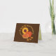 Selig Klassische Glückwunschkarte zum Erntedankfest. Brauner Hintergrund mit einem klassischen Erntedank inspiriert Design mit Sonnenblumen, Kuchen und Kürbiskuchen. Blätter und Nachricht hinzugefügt. Mit den Zazzles Designer Tools können Sie das ganz einfach personalisieren.