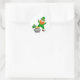 Charaktere fröhliches Kobold mit einem Topf voller Goldmünzen und einem Klee, ein Zwerg in einer grünen Kaffeemaschine zur Illustration des Patricks
