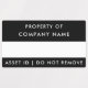 Einfache individuelle ID-Markierung für Firmenkunden, um Eigentum Ihres Unternehmens mit einem modernen minimalistischen Stil in schwarz zu kennzeichnen.