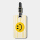 Gesicht auf sonnigen gelben Streifen Gepäckanhänger