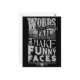 Ein ziemlich Viktorianisches, altes typografisches Design, das jedem lasse zu wissen, dass Wörter nicht immer der bevorzugte Weg sind, zu kommunizieren. "Manchmal versagte mir Worte. Wenn das passiert, mache ich lustige Gesichter."