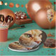 Das Design zeigt ein nahes Foto einer Hauskatze.