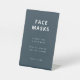 Einfache, stilvolle Hochzeitscovid-19-Gesichtsmaske-Station in einem modernen minimalistischen skandinavischen Design-Stil mit einer zeitgenössischen Typografie in Weiß auf einem rauchstaubblauen Hintergrund in einem informellen lässigen Stil. Der Text kann leicht für ein einzigartiges Design personalisiert werden, um die Gäste während Ihres besonderen Tages sicher behalten.