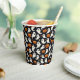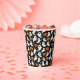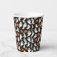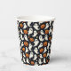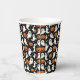 Niedliche Geister schweben auf einem schwarzen Hintergrund zwischen grinsenden Jack o'lanterns auf dieser lustigen Halloween-Papiertasse.