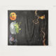 Wunderbarer Watercolor schafft glückliche Halloween-Szene den perfekten Fotohintergrundhintergrund für Ihr Halloween-Kostüm-Party!. Im Entwurf geschlossen gespenstische alte Baumaste mit einer Eule und drei baumelnden Spinnen ein. Creepy orange Kürbis-Kürbislaterne, sprudelnder grüner Schlammhexegroßer kessel und ein Hexehut! Schwarzer gepunkteter Hintergrund mit addiertem Beschaffenheitseffekt. Vervollkommnen Sie oder Stamm oder Leckerei Ereignisse und Halloween-Partys.