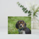Ein neugieriger Beagle-Welpe sitzt auf einem grünen Rasen, dessen seelenbraune Augen mit jugendlichem Wunder funkeln. Das weiche Sonnenlicht hebt das dreifarbige Fell von Schwarz, Bräune und Weiß hervor, während ein spielerischer blauer Kragen mit Pfotendrucken eine Touch Charme verleiht. Der verschwommene Hintergrund von Gras und fernen Bäumen schafft eine ruhige Umgebung und erweckt die unschuldige Freude eines Welpentages im Freien. Dieses Bild erinnert an die Wärme der Freundschaft und an die einfache, herzliche Freude eines Augenblicks, der mit einem wütenden Freund in der Natur verbracht wird.
