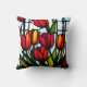 In einem farbigen Glas-Design sind farbenfrohe schöne Tulpen in einem wiederholten Muster abgebildet