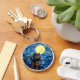 Gestaltetes Glas Black Cat Starry Night Schlüsselanhänger