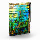 Ein Jugendstil-Fenster aus Buntglas von Seestern unter dem Meer durch die Tiffany. In den Farben Blau, aquamarin, Gold und Braun. Ein elegantes Vintages Design.