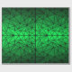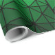 Gestaltetes Glasmuster 01.Green.noline Dieses Bild zeigt ein geometrisches Muster weißer Linien, die ein Gitter miteinander verbundener Dreiecke bilden. Die Dreiecke sind mit einem Farbverlauf von grünen Farbtönen gefüllt, der von einem dunkleren Grün an den Kanten zu einem hellen, lebendigen Grün in der Mitte übergeht. Das Muster ist symmetrisch und besteht aus vier getrennten Abschnitten, die durch weiße Linien geteilt sind. Der Gesamteffekt ist ein faszinierendes und abstraktes Design, das mit Licht und Farbe spielt.