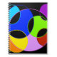 Farbiges und geometrisches Design, Kreise mit Regenbogenfarben auf schwarzem Hintergrund