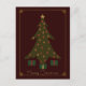 Dieses elegante Ausrüstungsbeschreibungen ein gesteppter Weihnachtsbaum mit den Juwel-getonten Verzierungen, die darunterliegend ihn und Geschenke, ganz umgeben durch eine empfindliches Goldmit filigran geschmückte Grenze mit Juwelen an den Ecken schmücken.