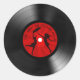 Glänzende schwarze Vinylaufzeichnung mit dem roten Aufkleber, der Silhouetten von zwei Mädchentanzen und von Wörtern "gestern Abend das DJ zeigt, rettete mein Leben", das in sie geschrieben wurde.  Hintergrund des Bildes ist kundengerecht und einfach, in Ihren Bedarf zu passen.  Es gibt diesen statischen Ton, Klicken und Pop, wenn Sie eine Schallplatte hören. Dieses ist ein perfektes Geschenk für clubbers, Ravers, Partygänger, DJ, Musiker, Produzenten, Musikfreunde und Tänzer. Großer Zusatz zur Raveausstattung für Fans aller Aromen der elektronischen Musik, vom Dschungel, von den drumandbass und vom techno zu IDM und von industriellem.