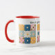 Einzigartiger und bunter Patchwork-Quilt-Musterbecher, den Quilter und Näher lieben werden. Gedruckt mit Bildern von Patchwork-Quilt-Blöcken und gestickten Blumen mit realistischen Details. Ein Text "Wenn das Leben dir Stoffreste gibt, mach eine Decke" kann im einfachen Zazzle-Editor bei Bedarf in anderen Text geändert werden. Passen Sie ihn weiter an, indem Sie Ihren bevorzugten Stil, Ihre Größe und Farbgebung wählen.