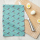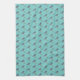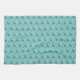 Geschirrtuch, das ein gesticktes Blauhähermuster auf einem Türkishintergrund kennzeichnet.