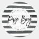 Ein schwarz-weiß gestreifter Aufkleber mit bearbeitbarem Text und "Page boy" Typografie. Einfache Änderung oder Löschung der Textfelder, die zur Anzug Ihrer persönlichen Anforderungen zur Verfügung stehen. Bitte besuchen Sie meinen Shop, um passende Artikel in dieser Sammlung zu finden, wie z.B. Vorschlagskarten, vielen Dank etc.