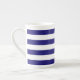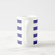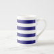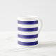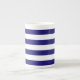 Sammeln Sie ein Set zeitgenössische entworfene Knochen-China-Kaffee-Tassen, um für selbst zu verwenden oder als Geschenk zu geben. Mischen Sie und Matcharten und -farben für ein eklektisches Gefühl. Kaffee-Tassen macht ein nettes Housewarminggeschenk oder Hochzeitsgeschenk. Königsblau- und Weißstreifen.