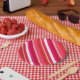 Gestreifte Süßwaren - rot, rosa und weiß Pappteller