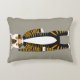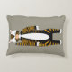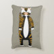 Ein Seitenkissen: wache Miezekatzekatze. andere Seite: schlafende Miezekatzekatze. Ein gestreiftes Tabbykätzchen mit zwei Ausdrücken, einer auf jeder Kissenseite. Für Kinder. Schlafenszeitbegleiter. Schwarz, weiß, rosa und Gold. TAN-Hintergrund. Kleines Kissen.