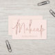 Eine elegante, moderne, stilvolle Makeup-Künstler-Visitenkarte mit eleganter, moderner, einfacher Handschrift-Stil Typografie in Rose Gold auf einem rot-rosa Hintergrund.